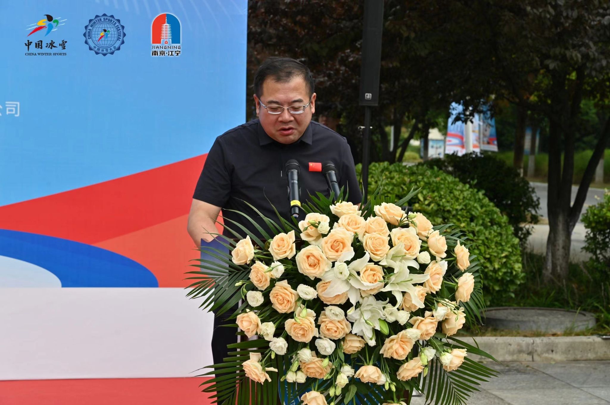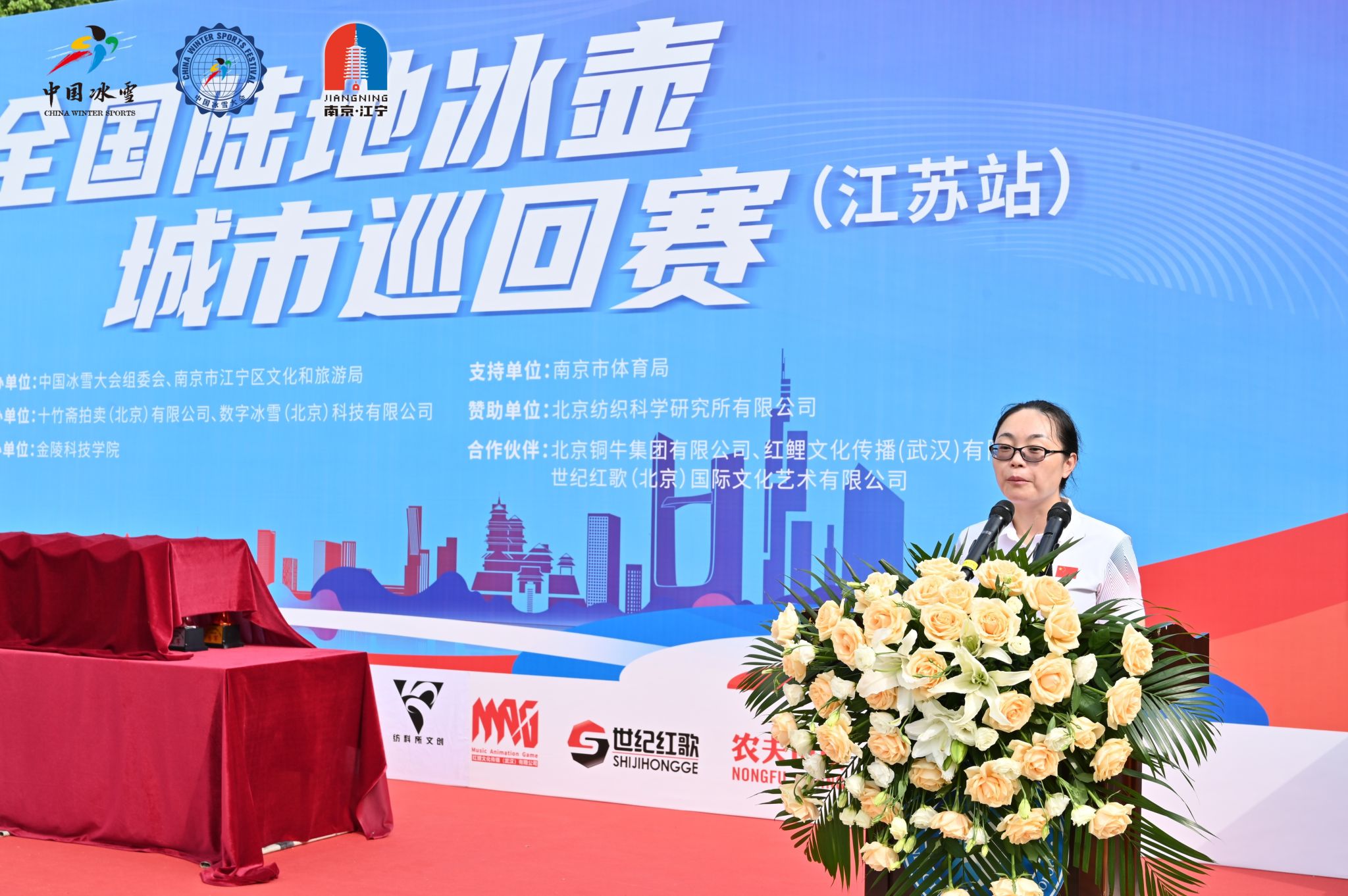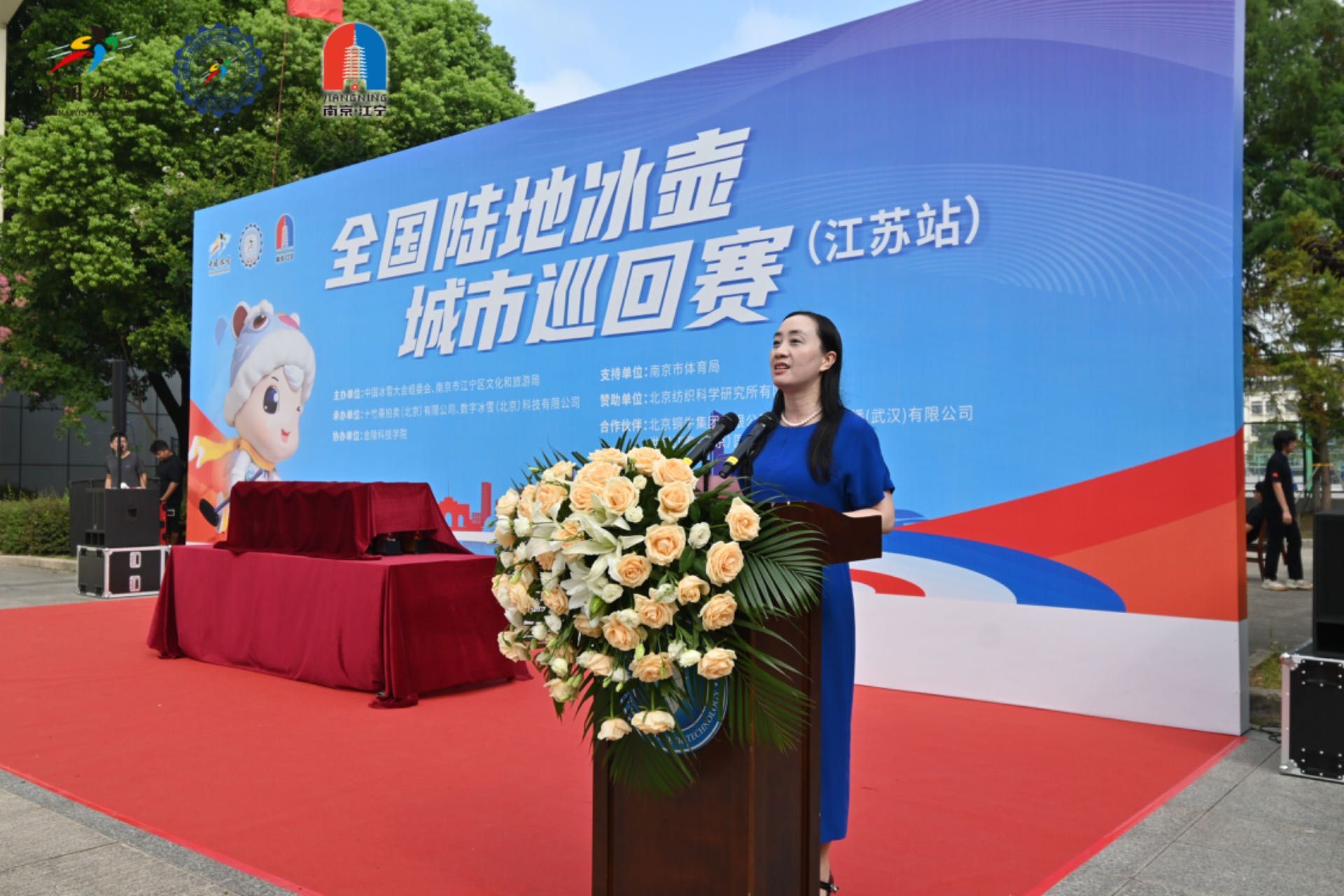 在开幕式上,由南京市体育局副局长张顺翔宣布第一届全国陆地冰壶城市巡回赛(江苏站)正式开幕。