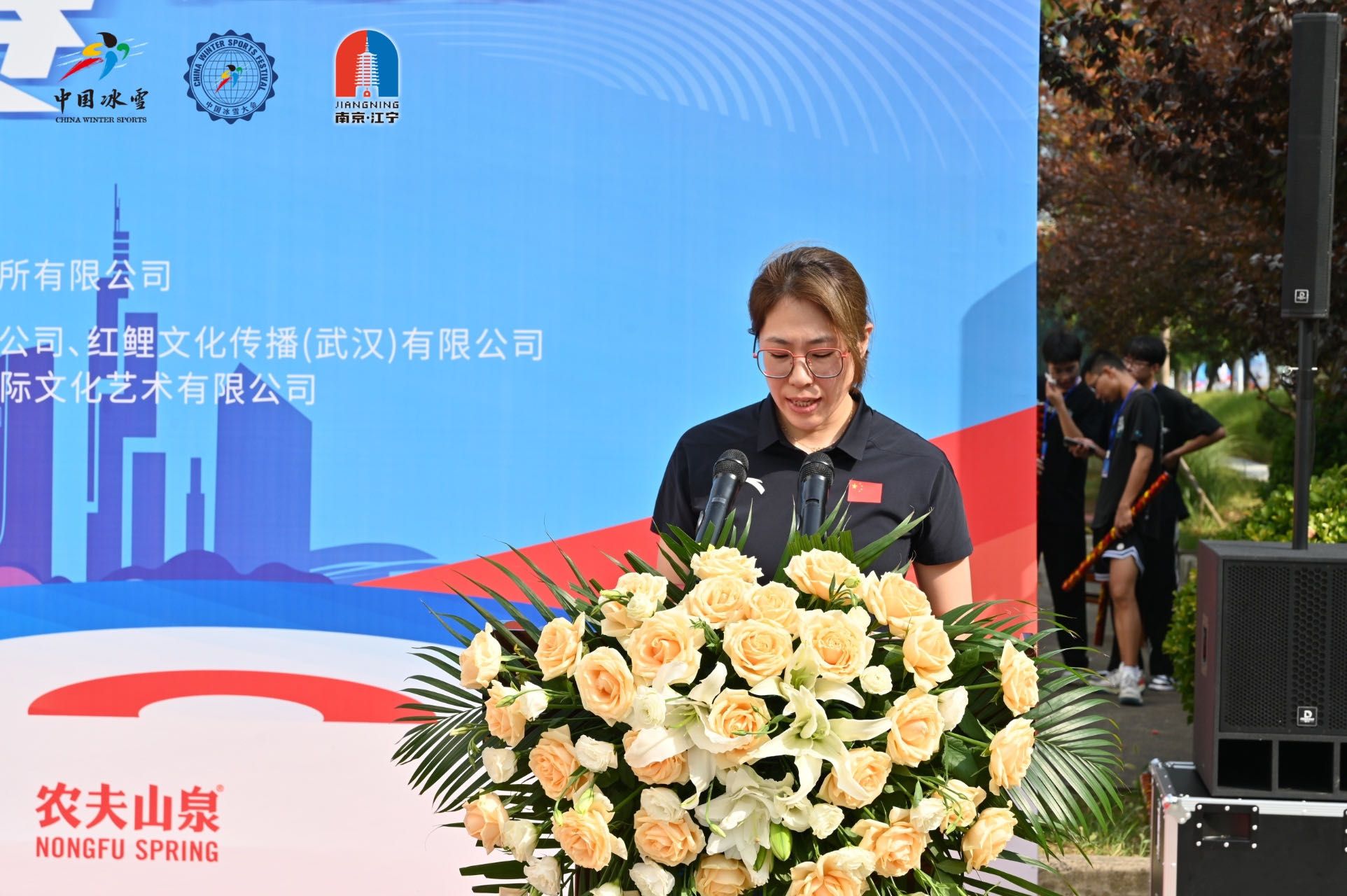 开幕式还特邀了中国女子冰壶运动员、国际级运动健将、世界冰壶运动比赛冠军刘金莉女士,在开幕式上,她称赞了陆地冰壶的魅力,肯定了江苏省的深厚文化底蕴,希望各位运动员的每一次投掷都全力以赴,每一场比赛都全情投入,最后预祝本届赛事的圆满成功。