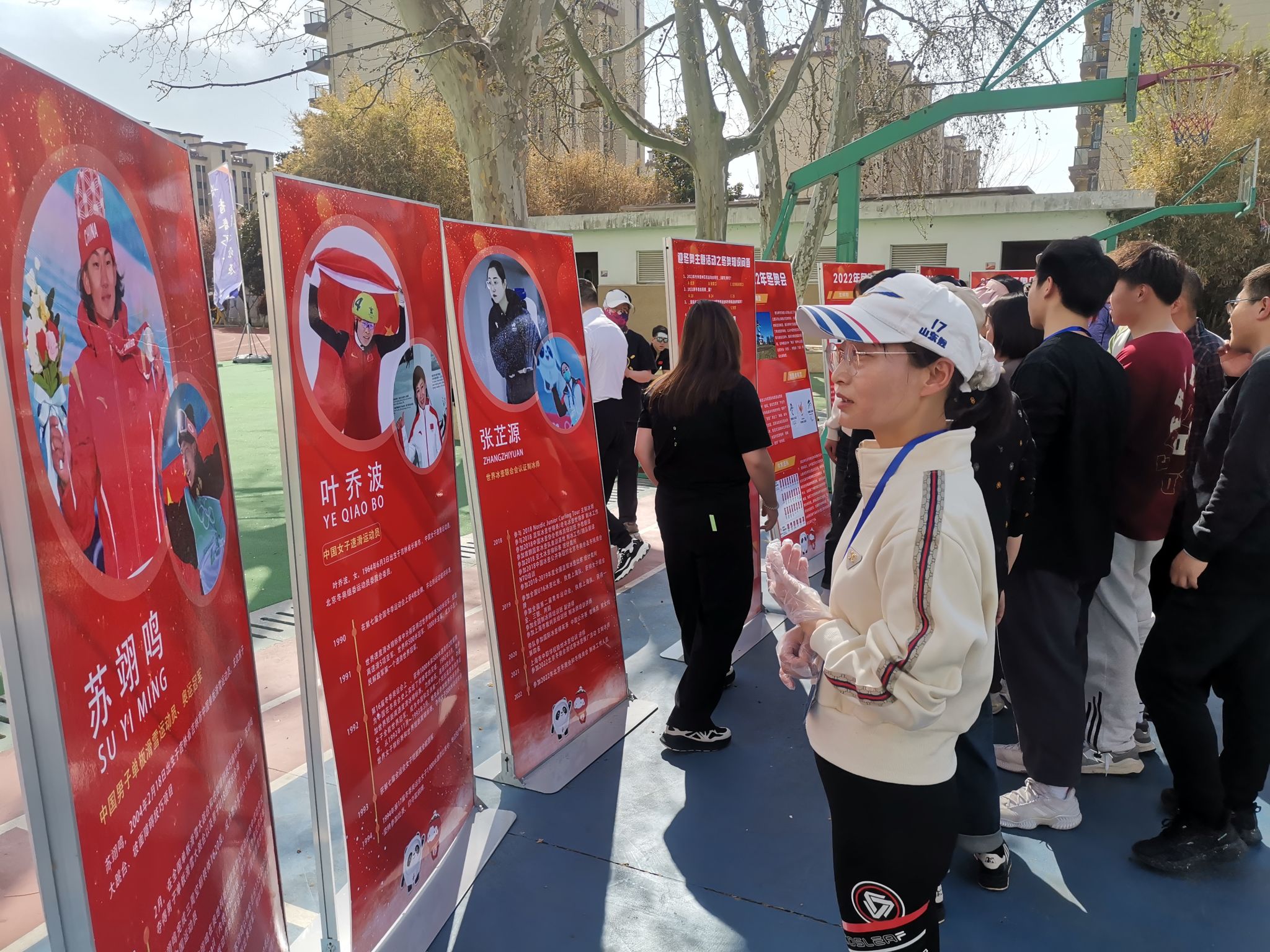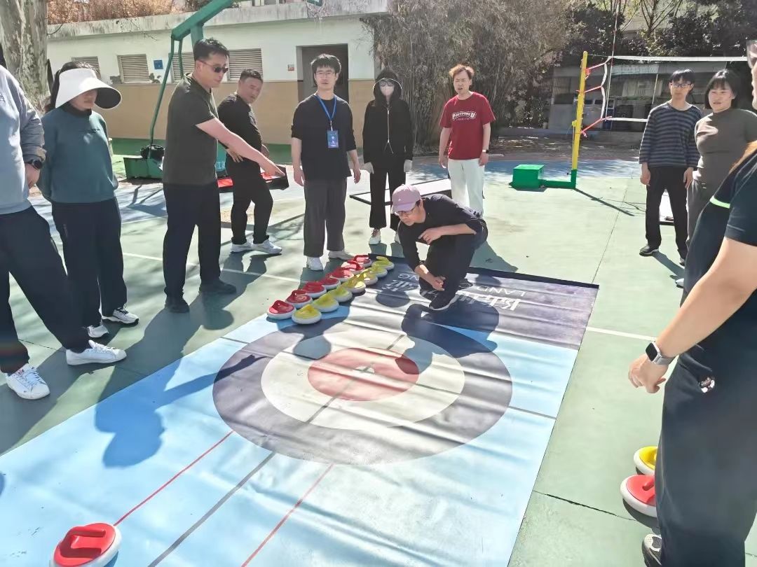 在活动中,我校吴畏、张东徽与江苏省冰雪运动协会特邀的“十四冬”越野滑雪(群众组)裁判长张广仁和中国第一位女子冰壶治冰师张芷源等专业培训教师,就冬奥知识宣传、弘扬北京冬奥精神和校园体育老师冰雪项目教练员、裁判员培训等方面进行了深度交流,并与来自30余所中小学校的80余名骨干体育老师及金牛湖中心小学的150余名学生一起完成了冰壶与陆地冰壶、越野滑雪与陆地越野滑轮等冰雪项目的理论培训和技能实践。