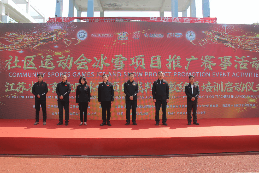 江苏省体育局冬季运动管理中心、江苏省冰雪运动协会、南京市教育局、南京市体育局、六合区教育局、六合区文化和旅游、六合金牛湖中心小学等单位领导出席了本次活动开幕式。