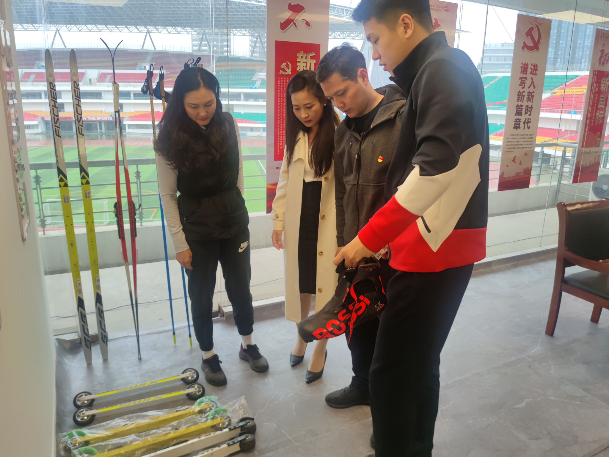 此外,协会裁教部孙文东和竞赛部杨志轩两位老师分别就江苏省陆地越野滑雪(滑轮)和陆地冰壶项目的普及与推广情况进行了介绍。他们与888集团线上网站直属党支部的党员教师共同展示了相关器材和设备,并分享了教学和训练中的注意事项。