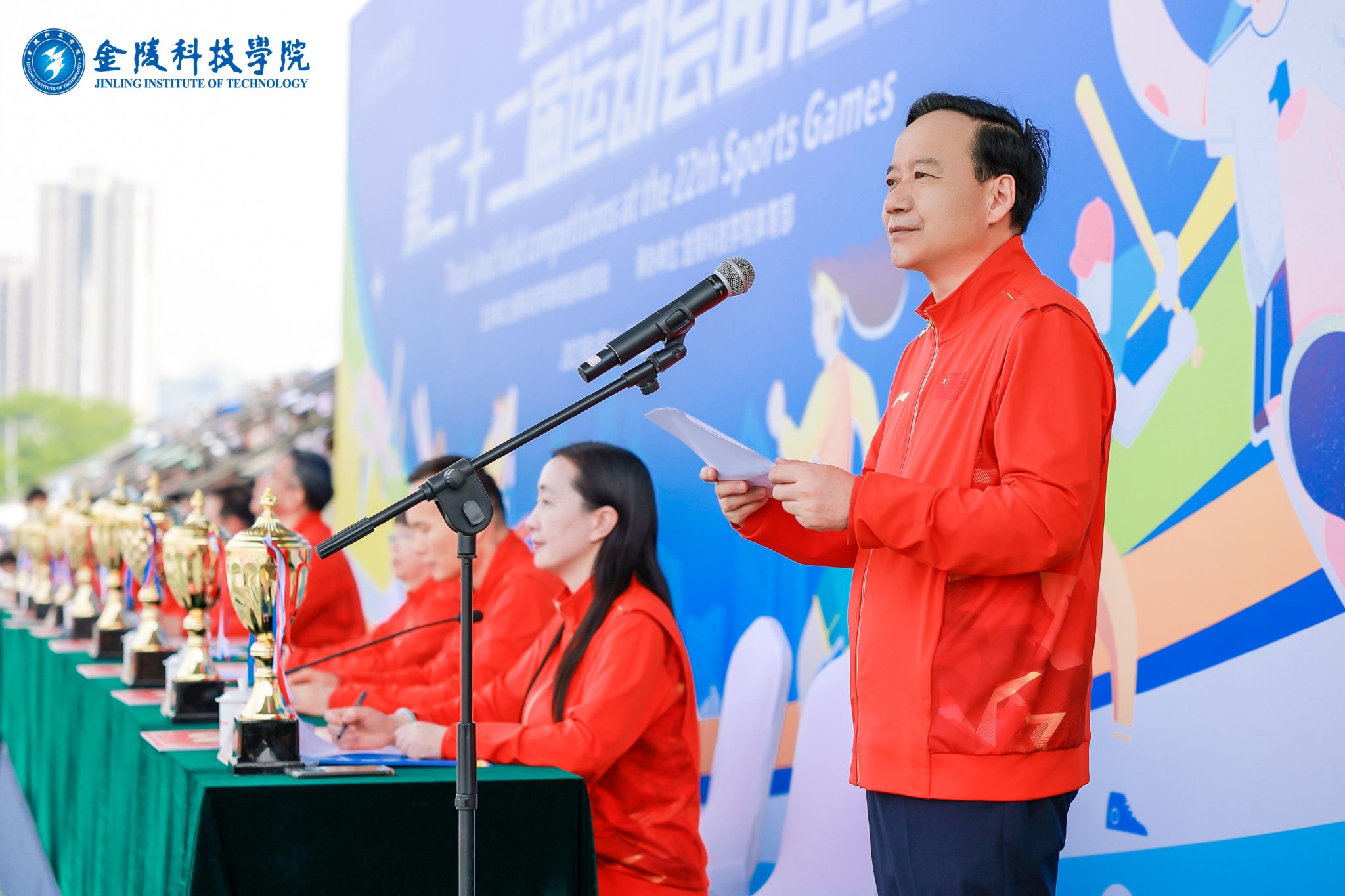 校领导刘志远、刘永彪、单晓峰、张燕、高永祥、王延光、顾晓燕、叶智锐、王靖华出席了开幕式。校长刘永彪在致辞中强调,体育承载着国家强盛、民族振兴的梦想,大力加强学校体育工作是新时代赋予我们的历史使命和必然要求。它不仅关乎人民幸福、民族未来,更是培养青年强健体魄、健康心理和坚毅品质的重要阵地。在“五育并举”的育人体系中,体育以其独特的魅力与价值,为学生的成长成才注入了蓬勃动力。校运会作为体育教育的重要组成部分,不仅为师生提供了一个广泛参与体育活动的平台,更是促进身心健康、增强集体凝聚力的重要途径。未来,学校还将深入推进“以体育人”专项工作,积极打造学校体育工作品牌,助力学校在加快建设特色鲜明的高水平新兴应用型大学的征程中迈出更加坚实有力的步伐。